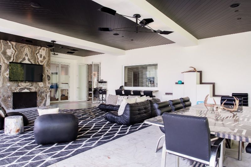 The top interior designer perfectly designed Gwen Stefani’s mansion, which contained seven bedrooms, ten baths, and of course, eye-popping features. Throughout every corner, the design identity of Kelly Wearstler is amazingly represented. Starting at the entrance to the property, a black-and-white-patterned covered walkway leads to the front door, with a spherical sculpture along the way.