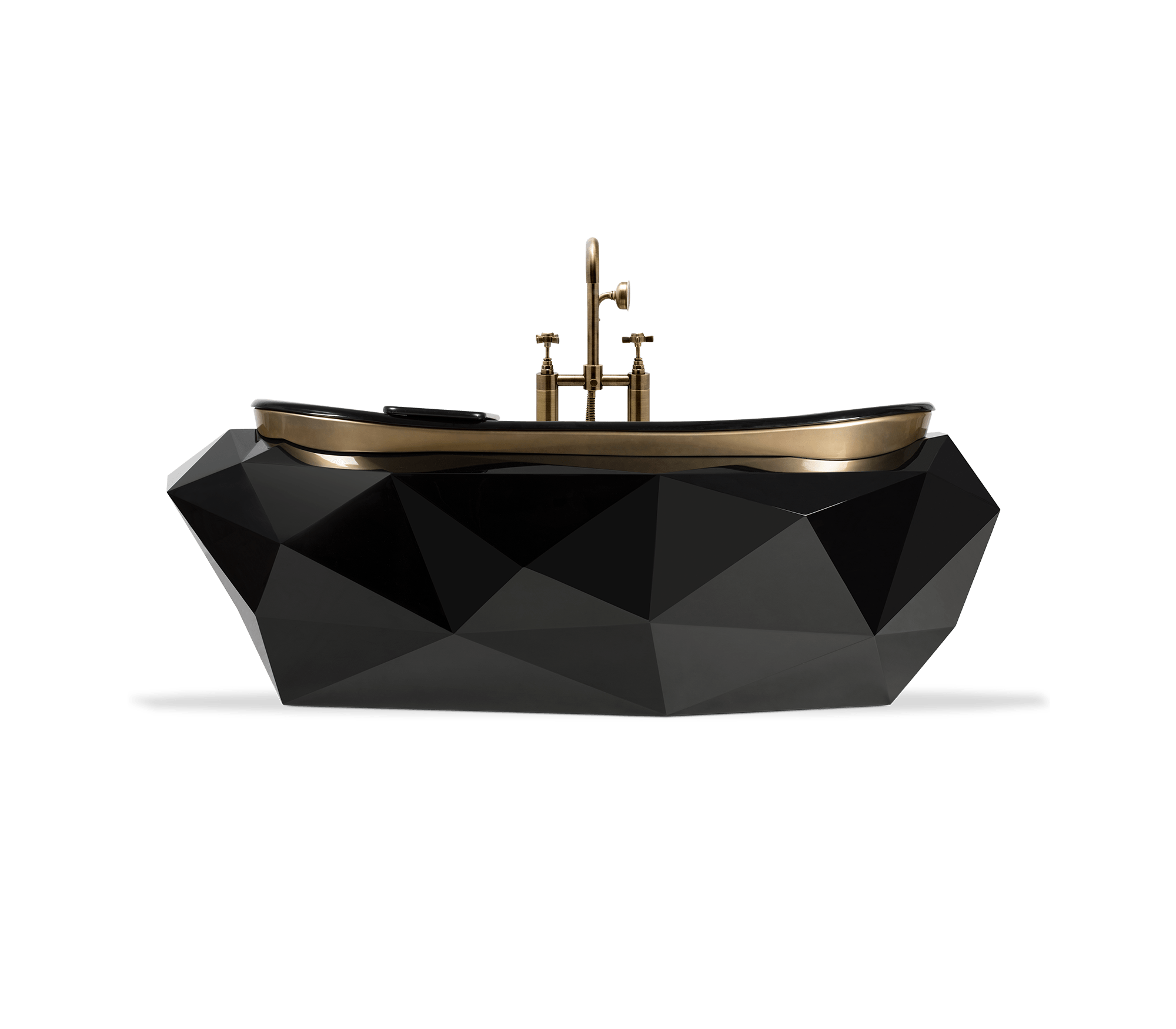 The centerpiece of this master bath is a 4,000-pound tub of faceted black marble carved from a single block.