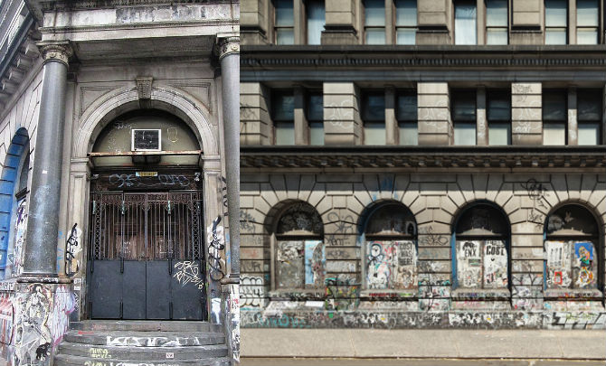 After 11 Spring Street got converted into condos the 190 Bowery that once was a Germania Bank became the block’s new favorite graffiti-covered curiosity. But it is not an abandoned home, it is just a “72-room Bohemian dream house”, inhabited for the past 42 years. It is up for sale by Cushman & Wakefield it has 6,260 square feet with a bassement and a roof terrace. The first floors feature an 18-foot ceiling height and the rest have 11-foot ceilings.